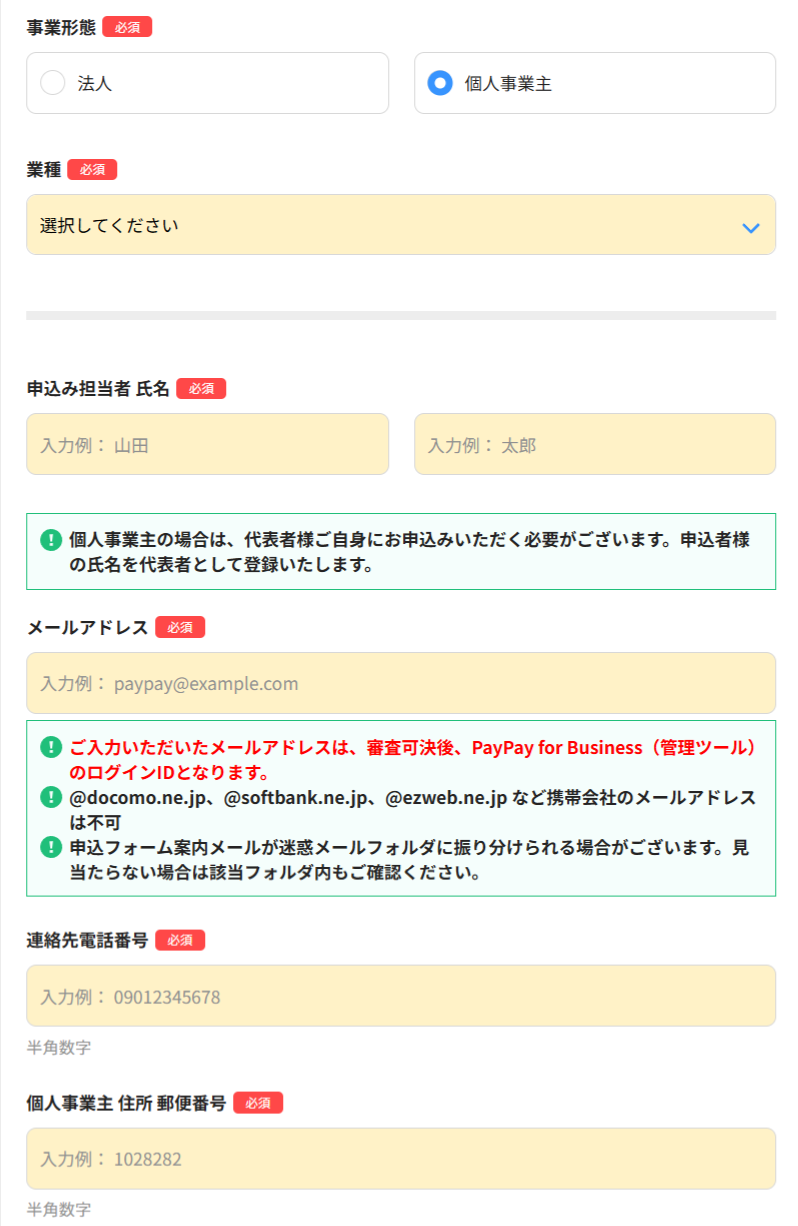 イベント出店などで、一時的にPayPayを利用したい場合だと、個人事業主の届け出をしていない方の方が多いかもしれませんよね。